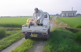 農道轍へ除草剤散布